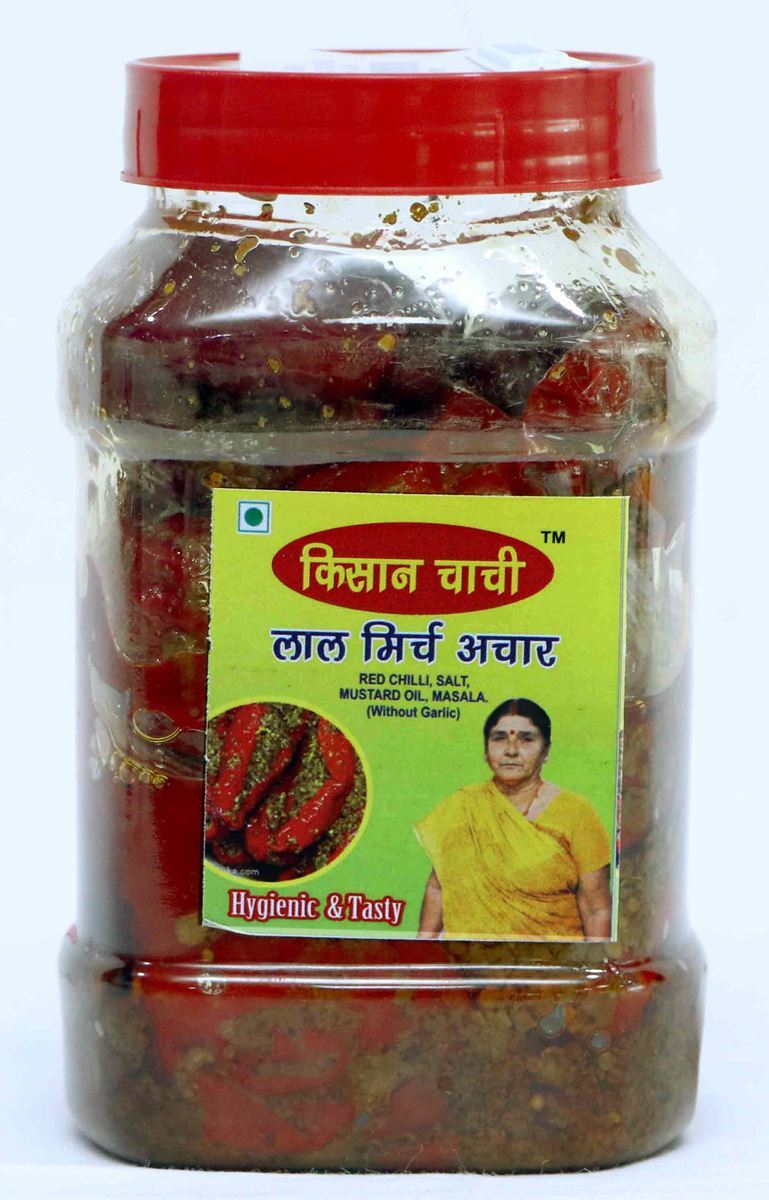 A spicy taste to your meals, ‘Kisan Chachi ‘Red Chilli pickle is prepared with Tender Green Chilli Slices, Lemon Juice, and a traditional blend of spices - giving this pickle a pleasant color, aroma, and texture.